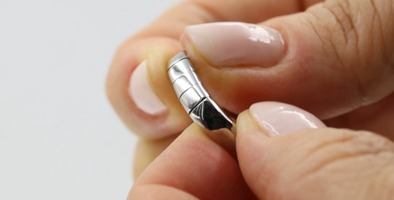 We convert your existing rings to the GlidesOn™ shank. Half the band is easily replaced with a new shank that comfortably expands and contracts on your finger. Your rings will always remain upright and stay in place.
